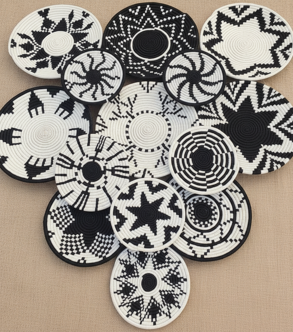 This set contains seven vibrant and beautiful baskets that are perfect for serving, wall décor, or storage, adding both functionality and style to any space.