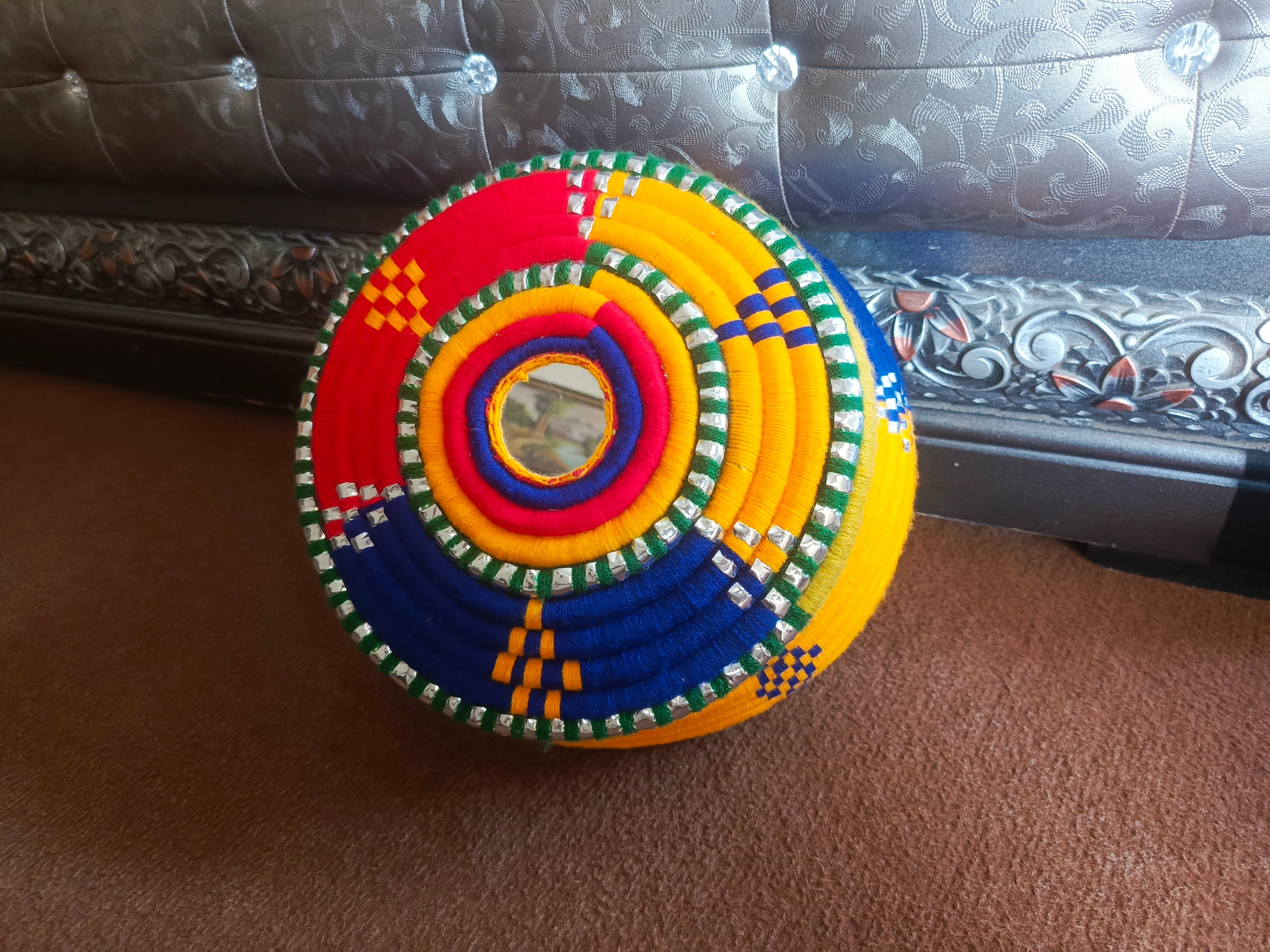Elevate your home decor with this handwoven hotpot from Bluch Crafts. This meticulously crafted item showcase the artistry and skill of females from the remote villages of Khyber Pakhtunkhwa, making it a unique addition to your interior space.