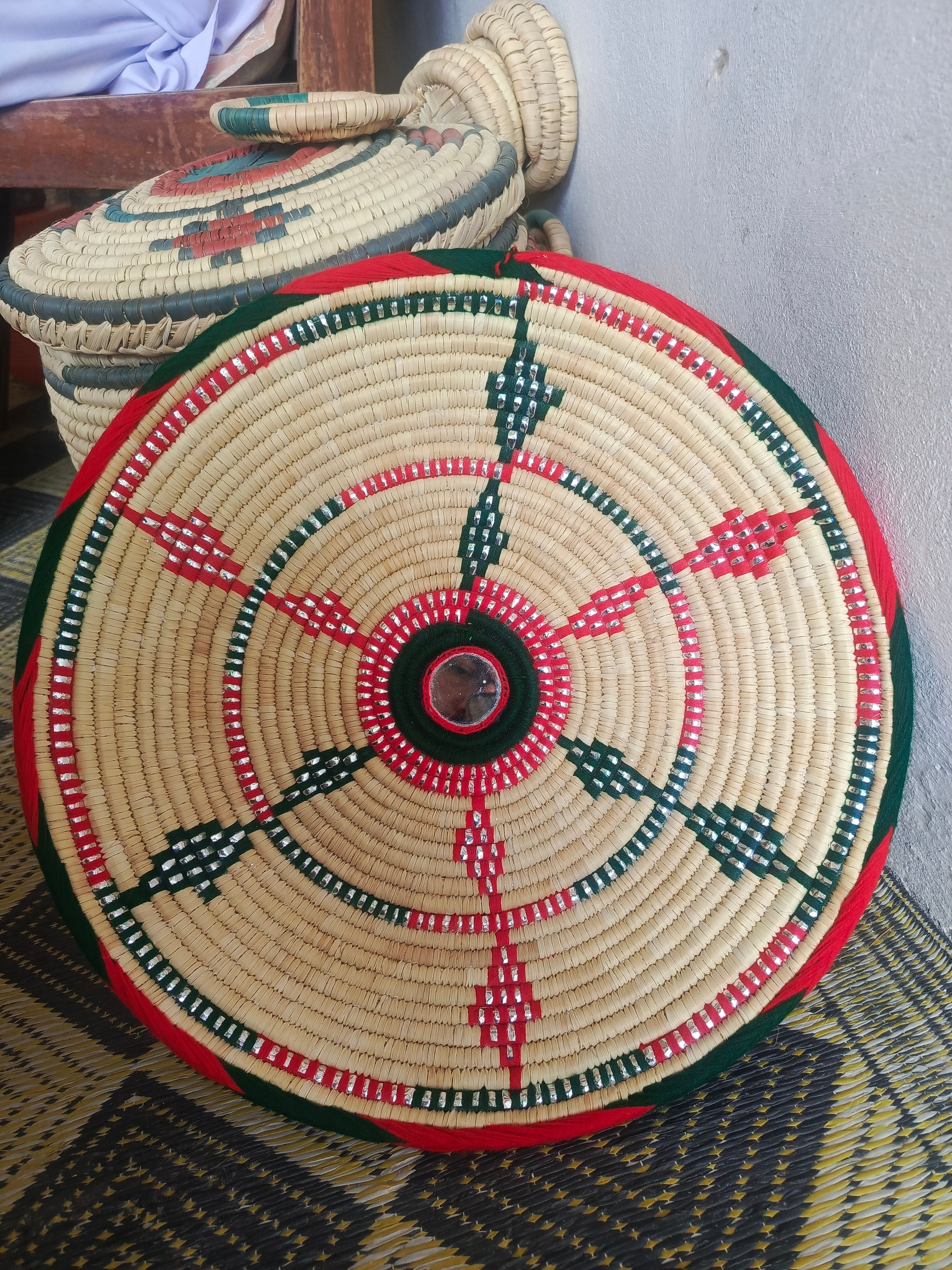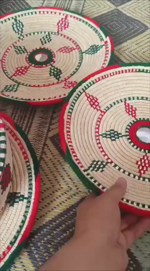 Enhance your space with Handwoven Date Palm Leaves Basket, a durable and eco-friendly piece featuring a natural finish with a tight, intricate weave, perfect for storage or decor